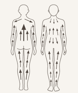 Brosse en direction du cœur, des pieds jusqu’au haut du corps.